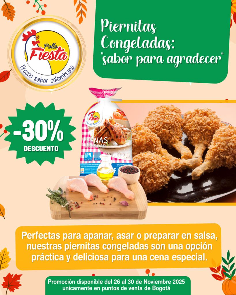 - Disponibles unicamente en Puntos de Venta Pollo Fiesta de Bogotá, entre el 26 y el 30 de Noviembre 2025.